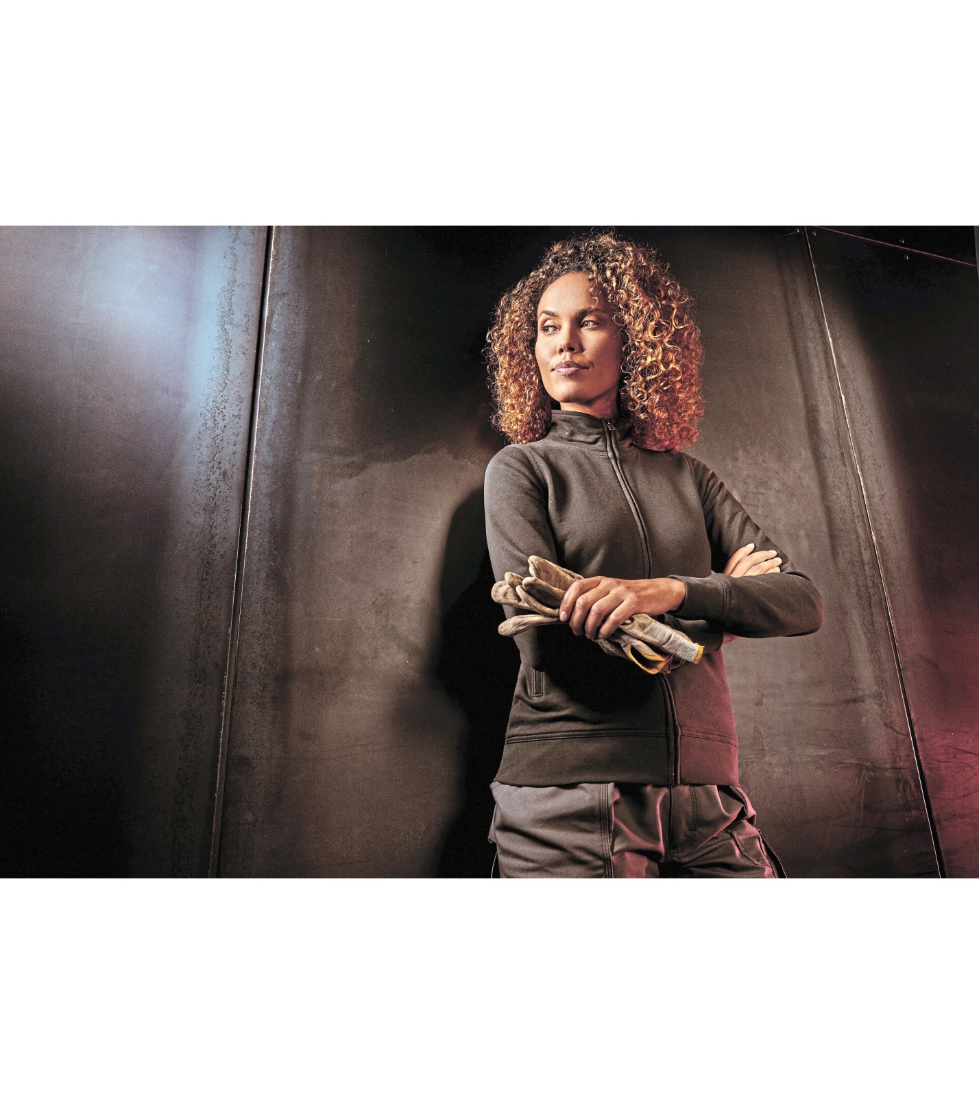 Pracovní oděv: mikina na zip s kapucí z nečesané moltonové tkaniny a směsi tkanin