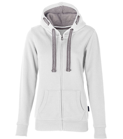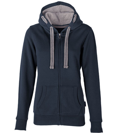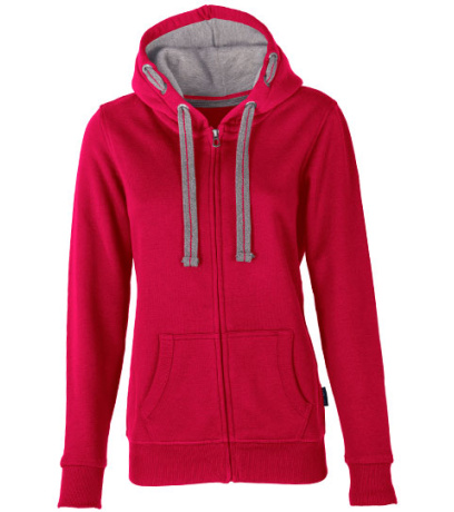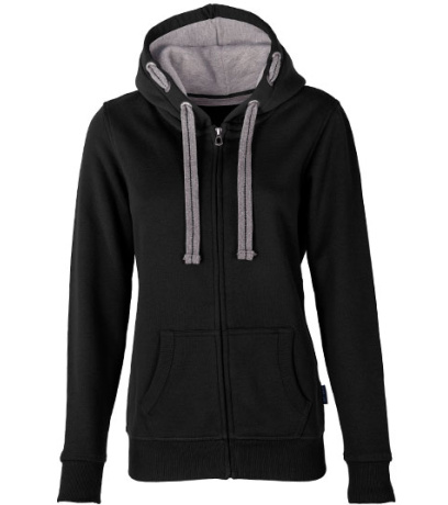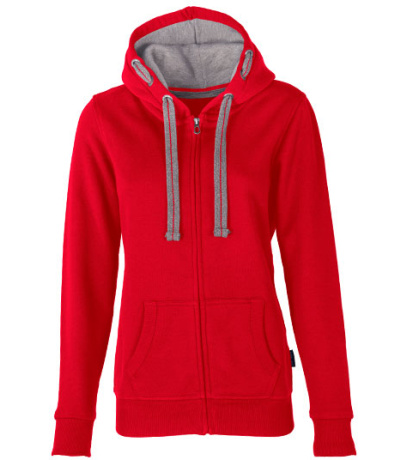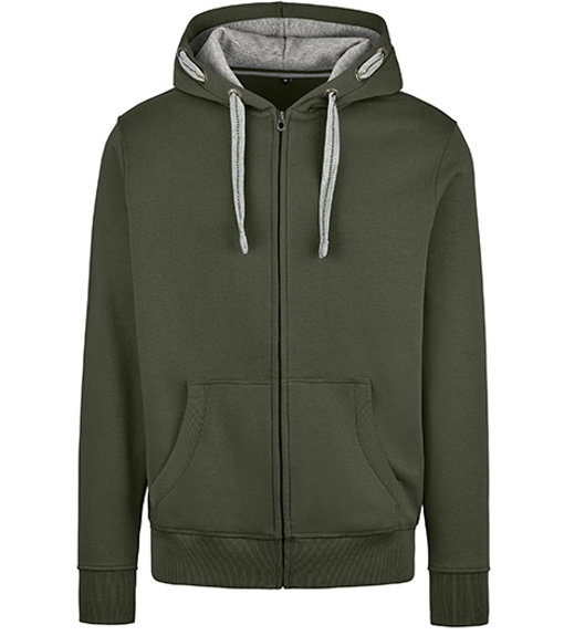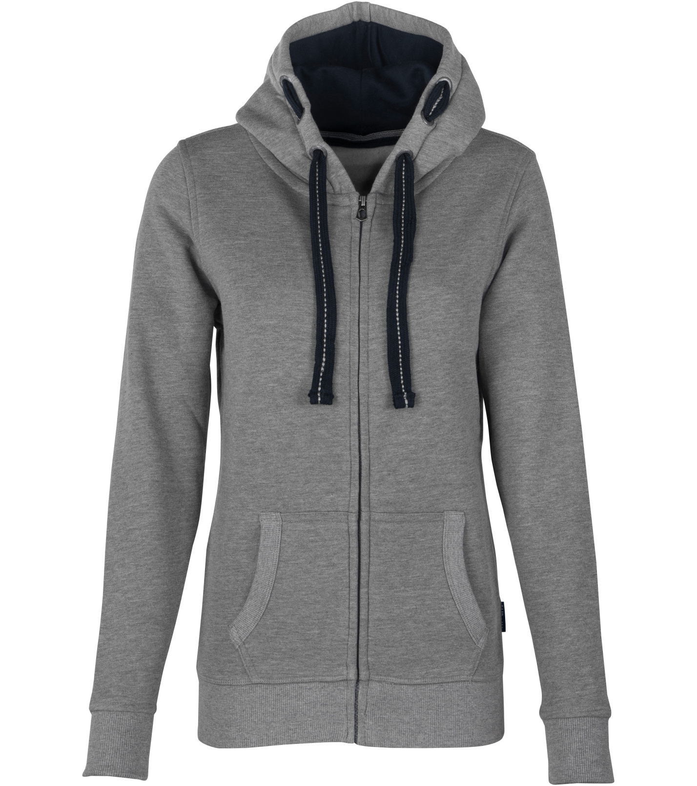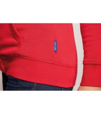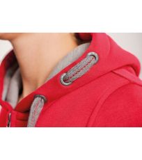 Kapuce s plochou kontrastní stahovací šňůrkou s výšivkou uprostřed a kontrastní podšívkou