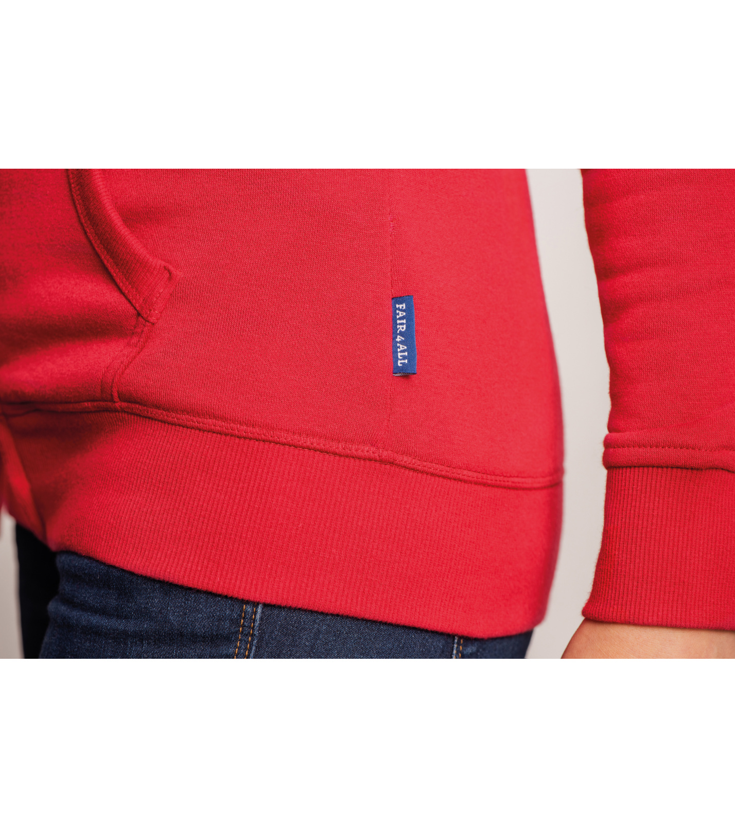 Tkaný štítek Fair4All na levém bočním švu