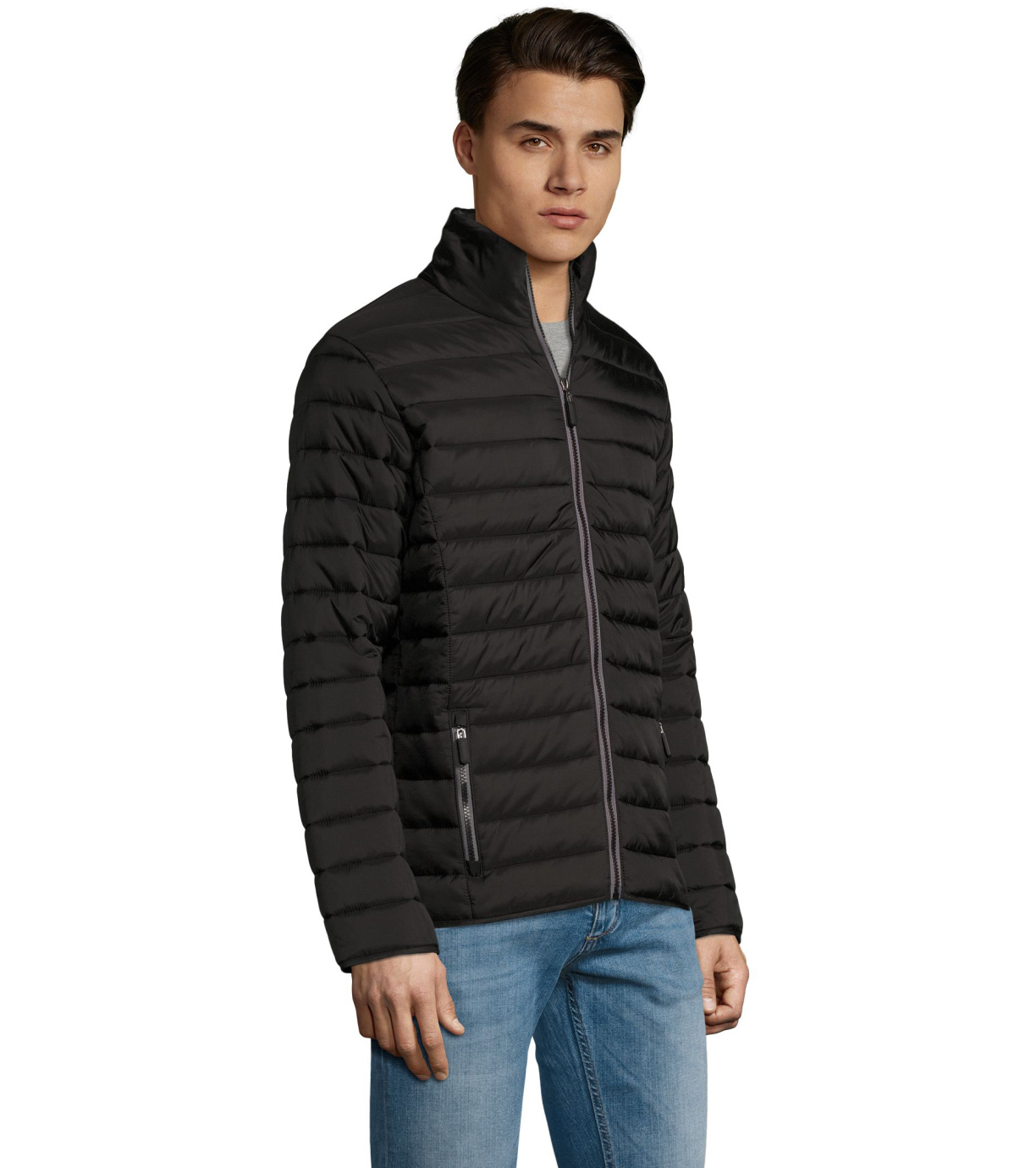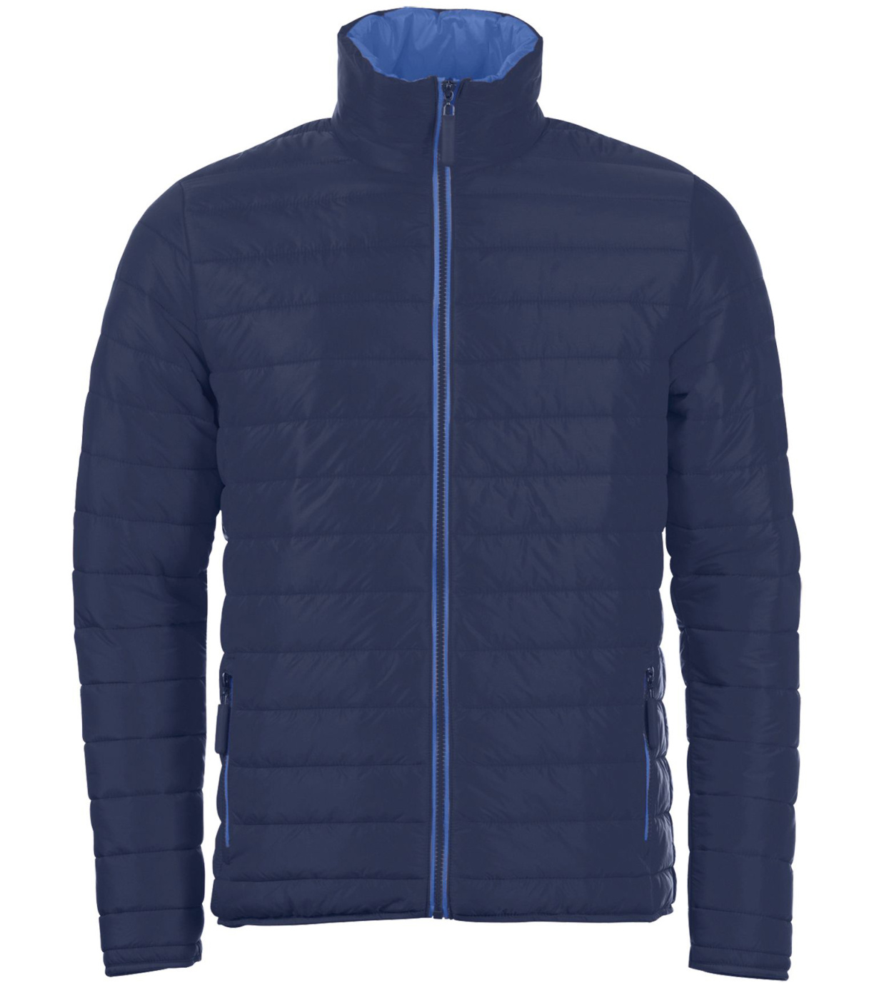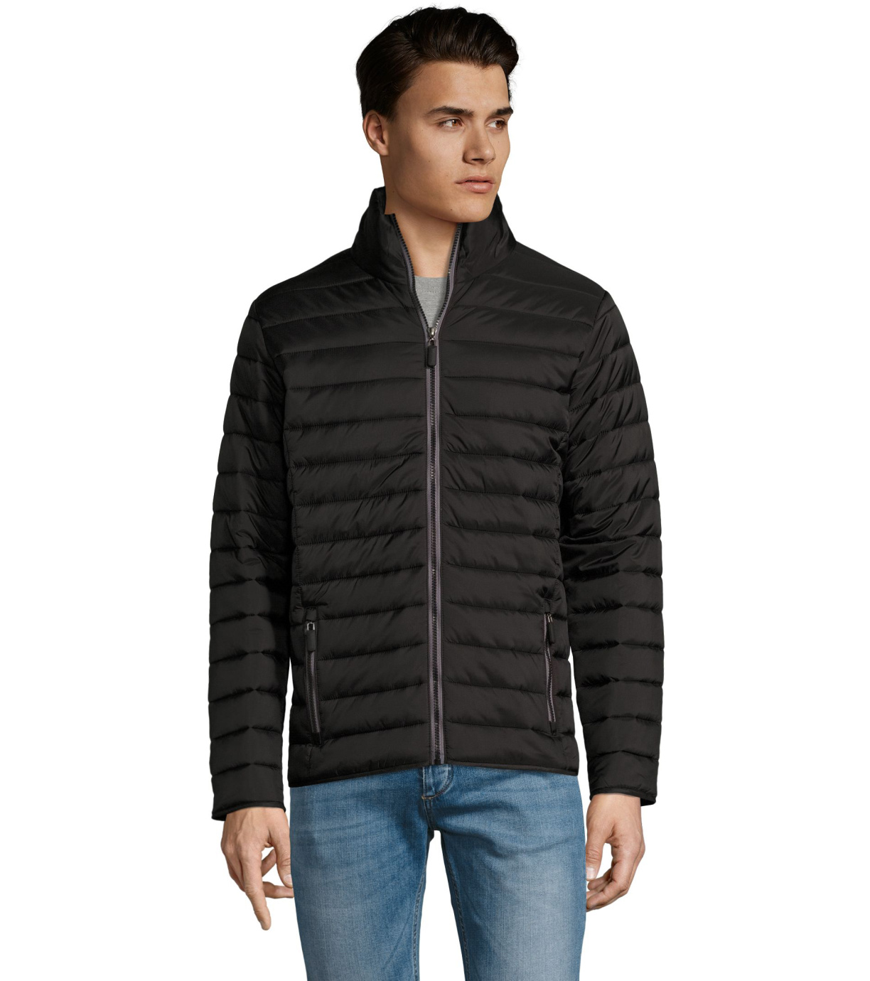 Pánská lehká prošívaná bunda s kontrastní podšívkou i zipy. Má celkem 2 boční kapsy se zipem v barvě podšívky. Límec je vysoký, střih přiléhavý. Vhodný na běžné nošení v jarních a podzimních dnech.