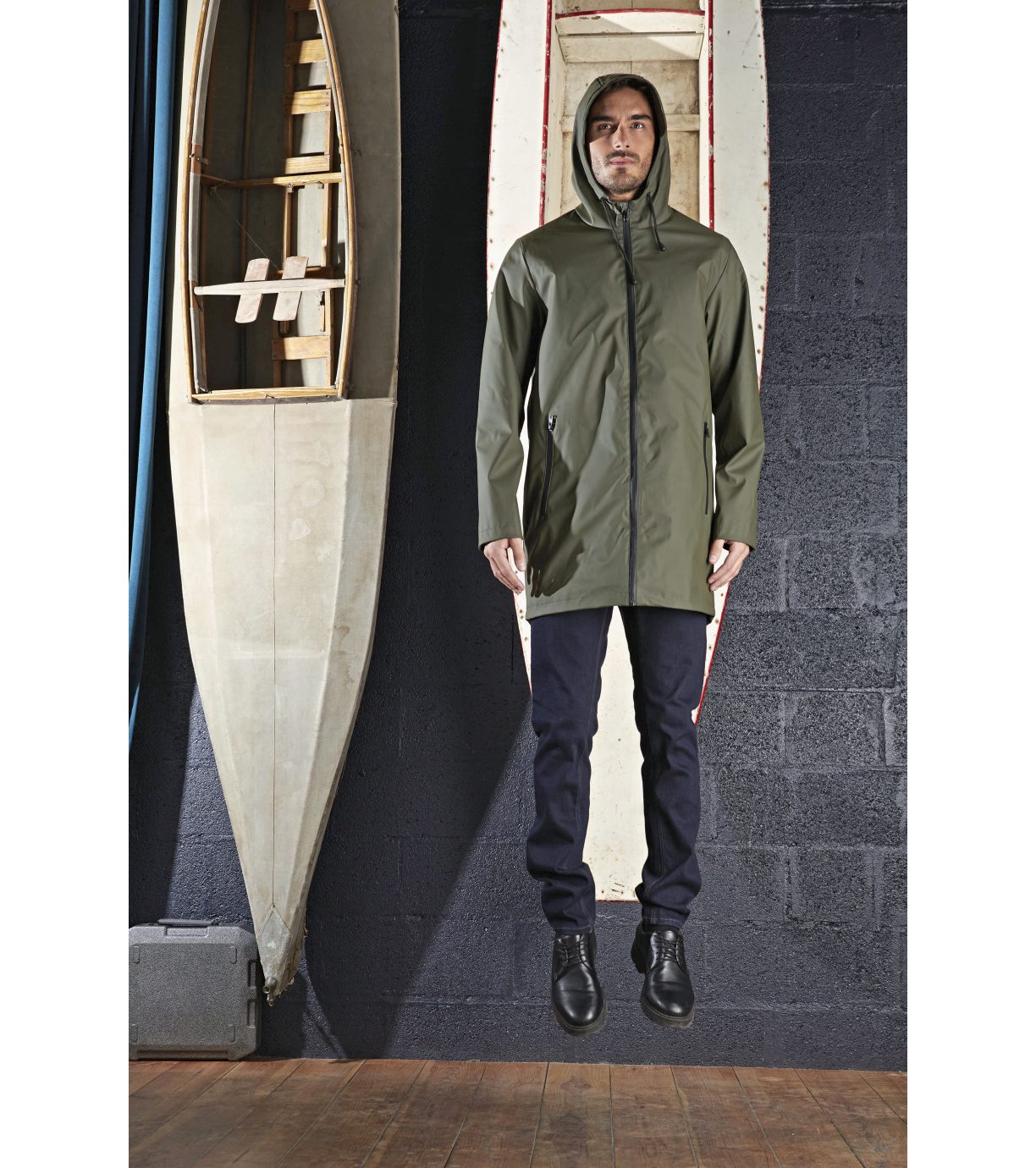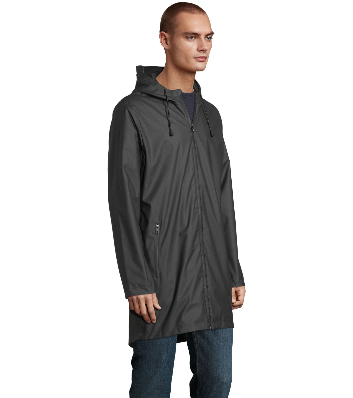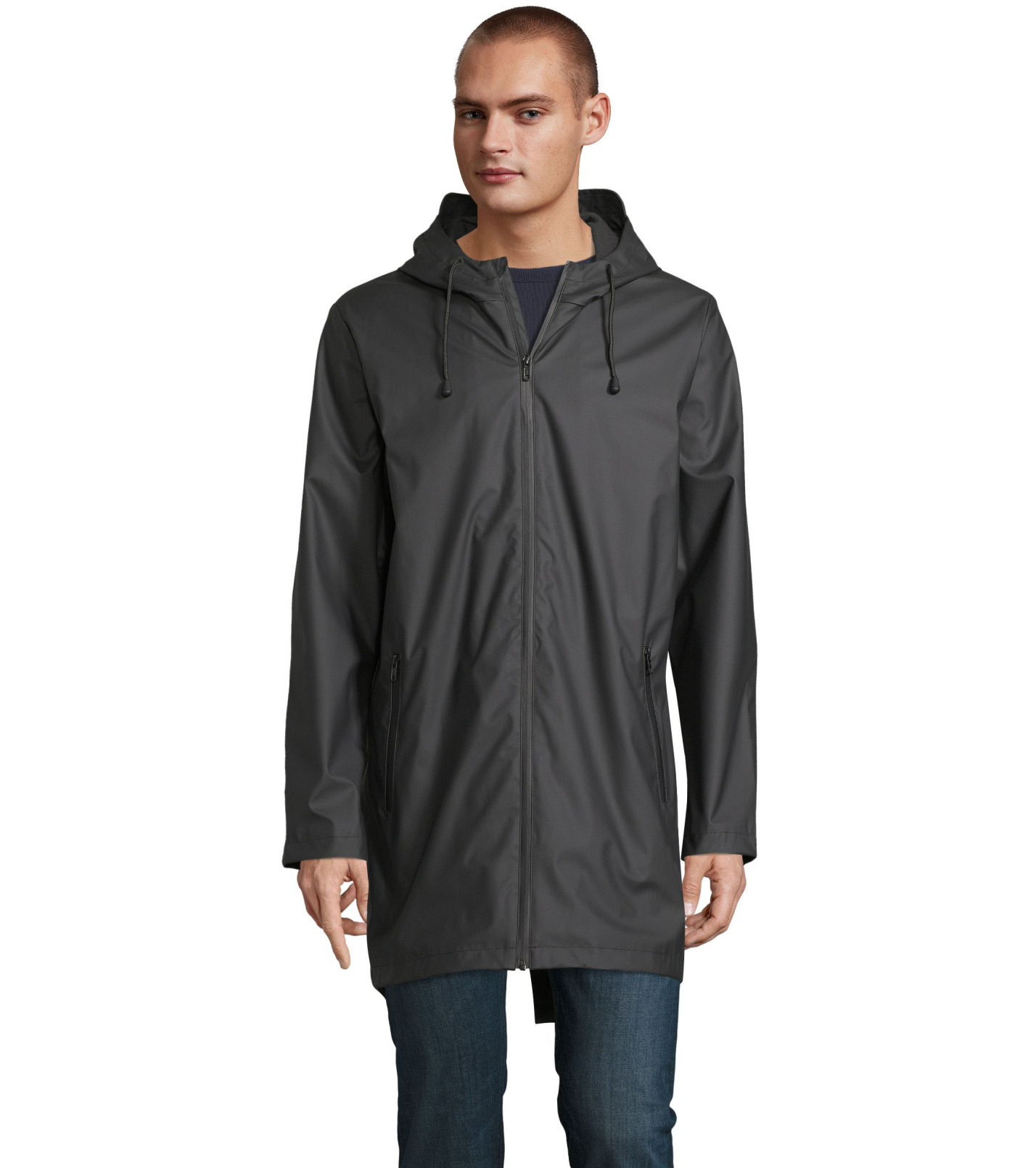 Pánská voděodolná bunda s vodotěsným otevíráním na zip. Kapuce s podšívkou a stahovací šňůrkou. Má 2 kapsy s vodotěsným zapínáním na zip, zpětná spodní štěrbina a podlepené švy. Na zadní straně rozparek.