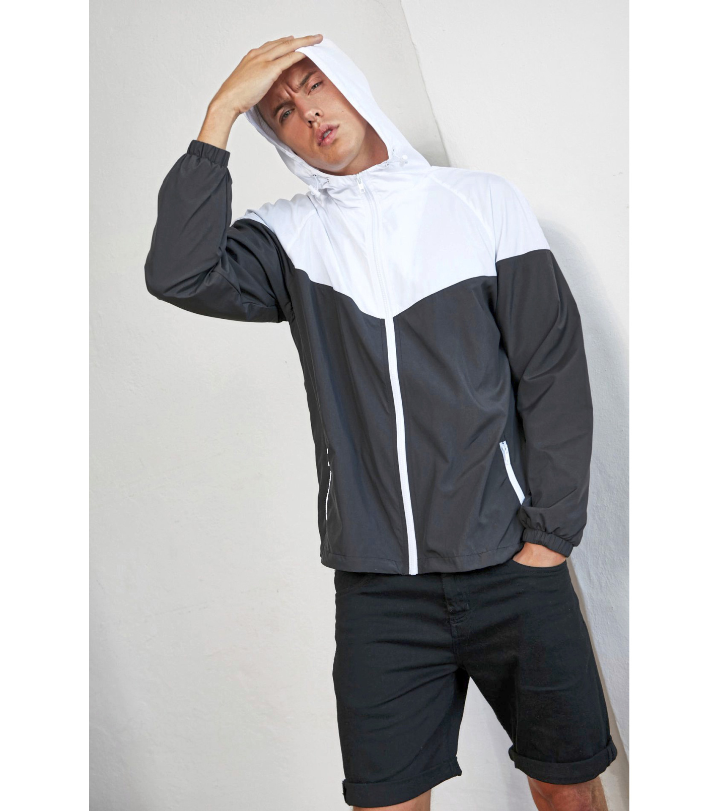 Barevné rozdělení bundy: ramenní část je odlišná