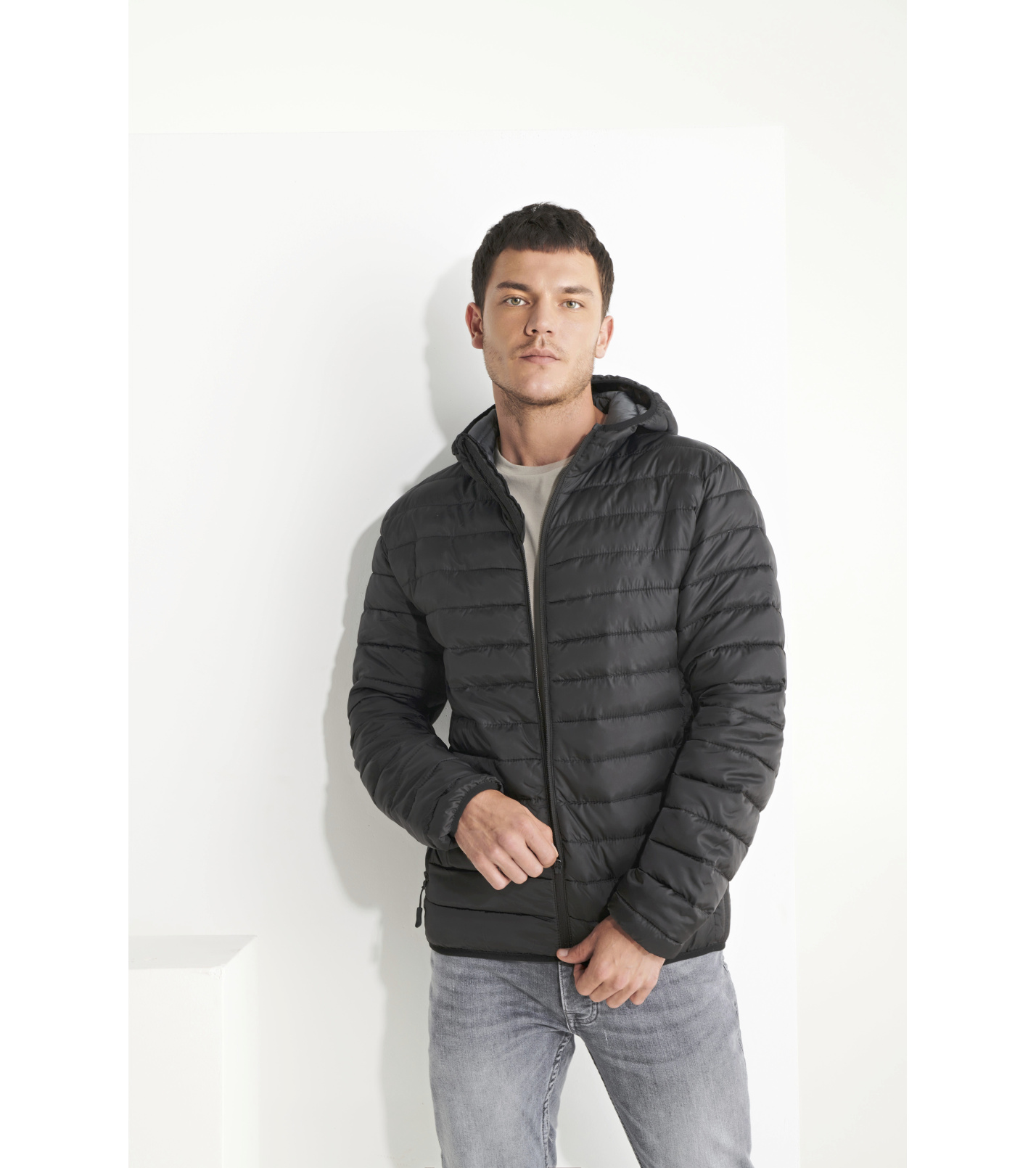 Prošívaná bunda s připojenou kapucí s měkkou, velmi lehkou výplní