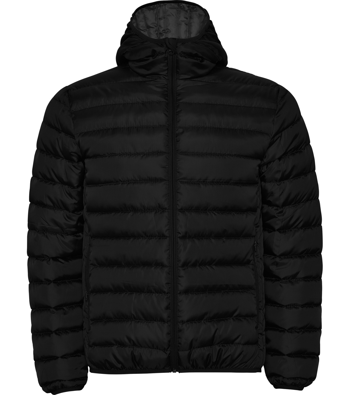 Elastický lem ve stejné barvě na manžetách, lemu a kapuci
