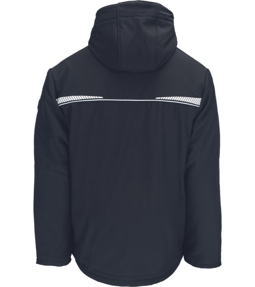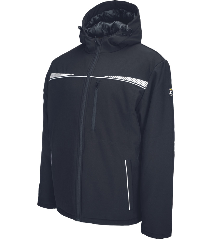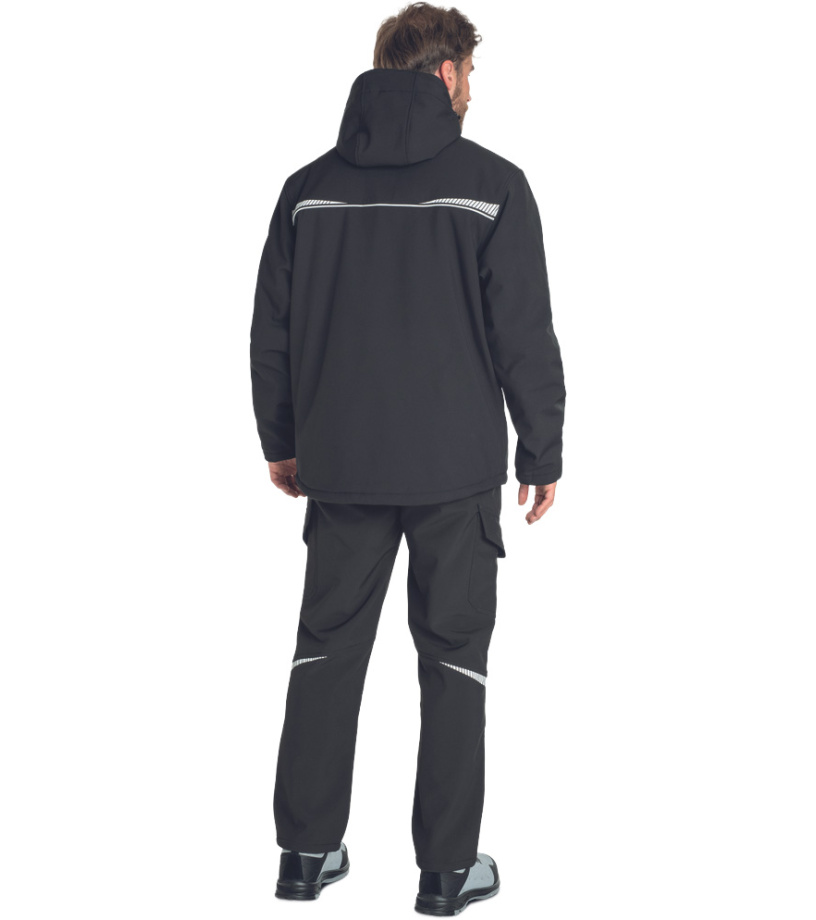 Zimní softshellová bunda se zateplenou kapucí je navržena pro maximální pohodlí i ochranu v chladném počasí. Hlavní zapínání na zip doplňují dvě boční kapsy na zip, levá náprsní kapsa a také praktická vnitřní náprsní kapsa pro bezpečné uložení drobností. Elastické manžety rukávů zajišťují lepší tepelný komfort a ventilace na zip v podpaží umožňuje regulaci odvětrávání při zvýšené aktivitě. Pro vyšší viditelnost za šera či tmy je bunda vybavena reflexními detaily a lemováním. Ideální volba pro práci i volný čas během zimního období.
