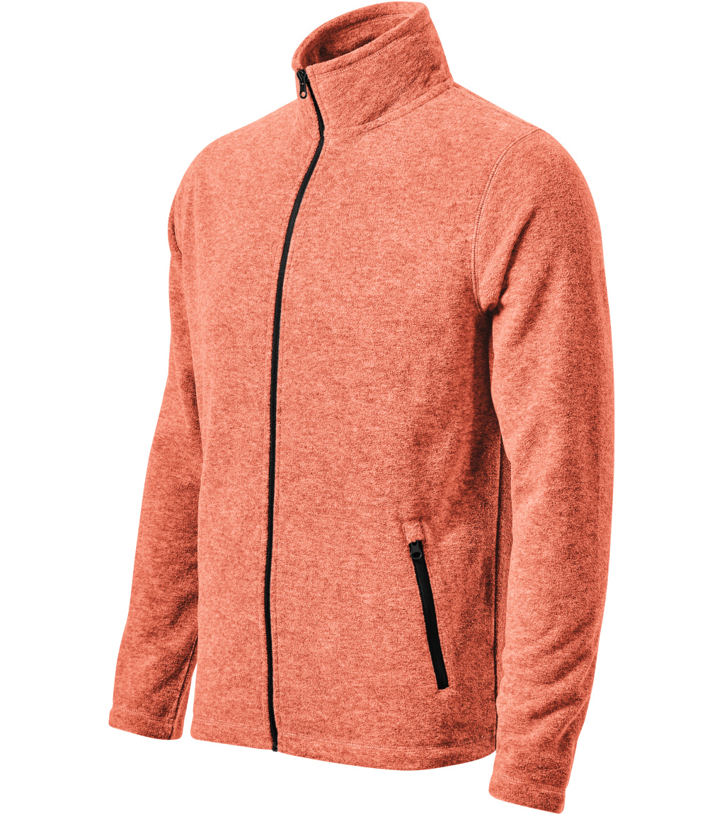 Pánská fleecová mikina z certifikovaného recyklovaného polyesteru. Bez etikety - připraveno na rebranding. celopropínací reverzní spirálový zip, vnitřní průkrčník začištěn páskou. Kapsy na zip. Dekorativní prošití a kontrastní prvky.