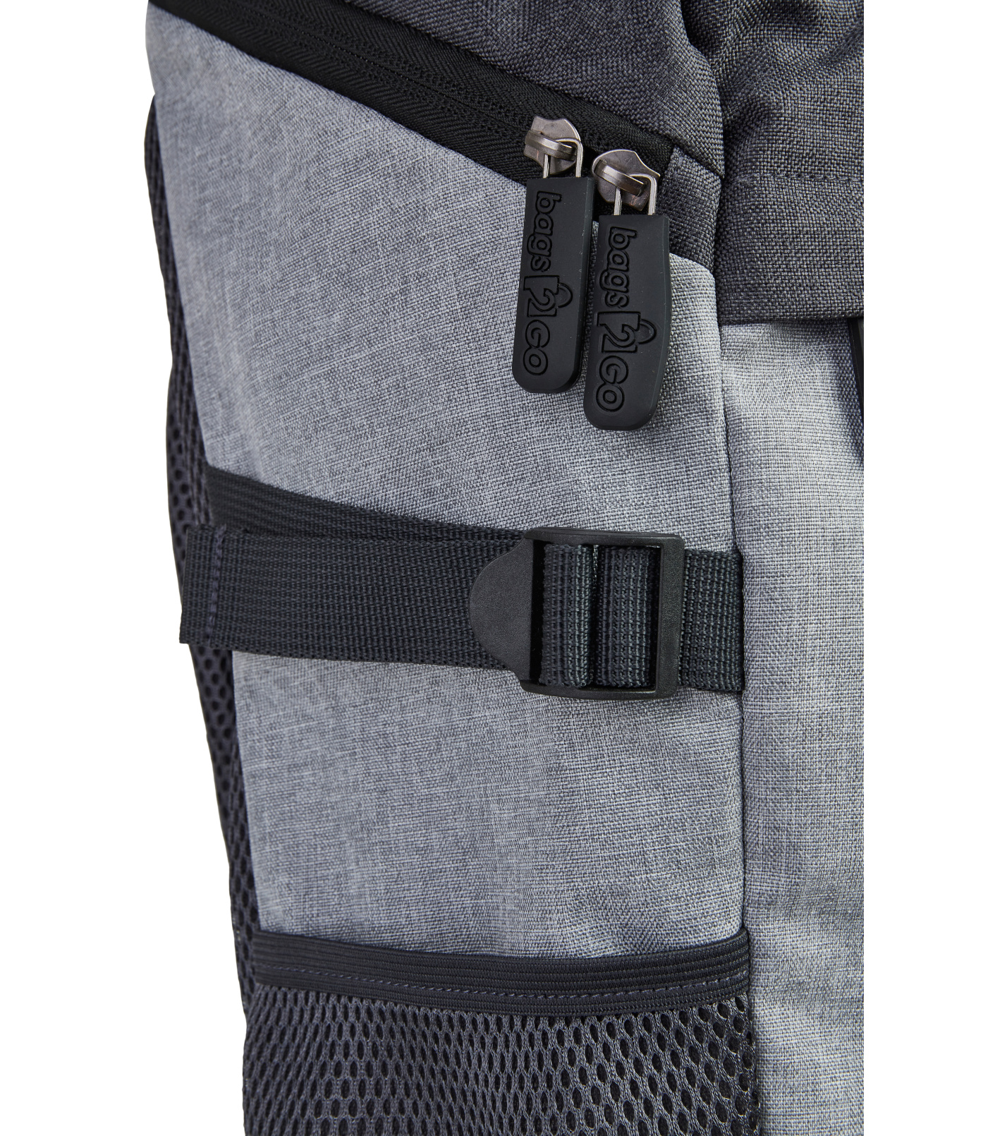 Všechny zipy jsou černé a na gumovém jezdci zipu je reliéfní logo „bags2GO“