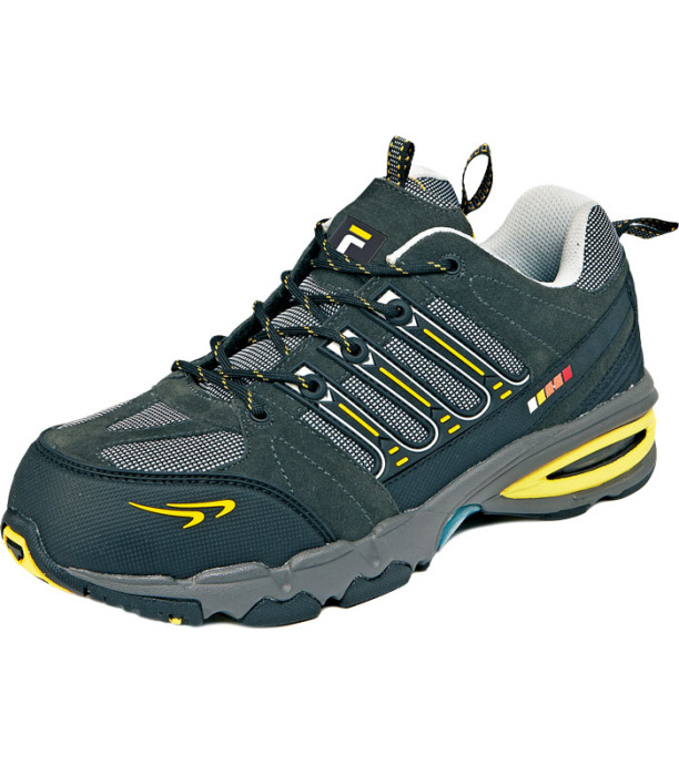 Bezpečnostní polobotka sportovního designu s kompozitní tužinkou a kevlarovou stélkou odolnou proti propíchnutí. Protiskluzová podrážka. Svršek z prodyšného textilu a semiše. Absorpce energie v patě. Obuv bez kovových součástí.