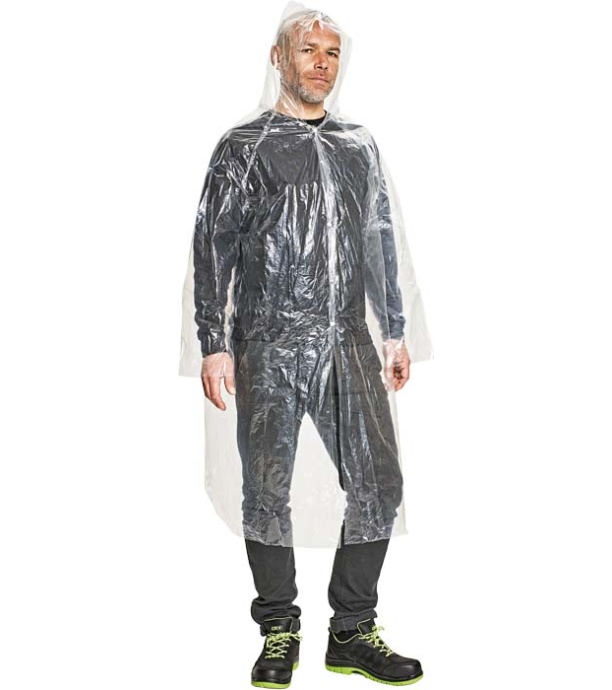 Lehká pláštěnka pro opakované použití. Přední zapínání na plastové druky. Volný střih k okamžitému použití přes klasický pracovní oděv. Všechny spojovací švy jsou zataveny. Transportní obal.