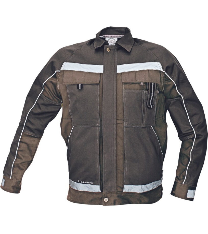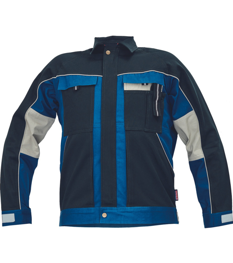 Pracovní bunda vysoké odolnosti se zapínáním na zip kryté légou na kovové druky. 2 velké přední kapsy. 2 náprsní kapsy s klopami na suchý zip. Nastavitelná šíře rukávů pomocí druků. Spodní polohovací lem na druky. Reflexní prvky.