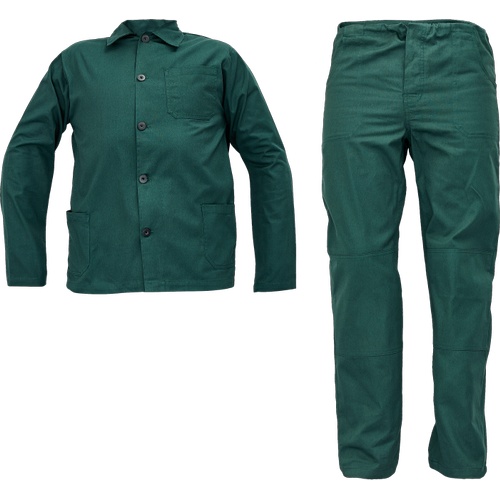 Pánská pracovní souprava obsahující pracovní bundu a kalhoty.