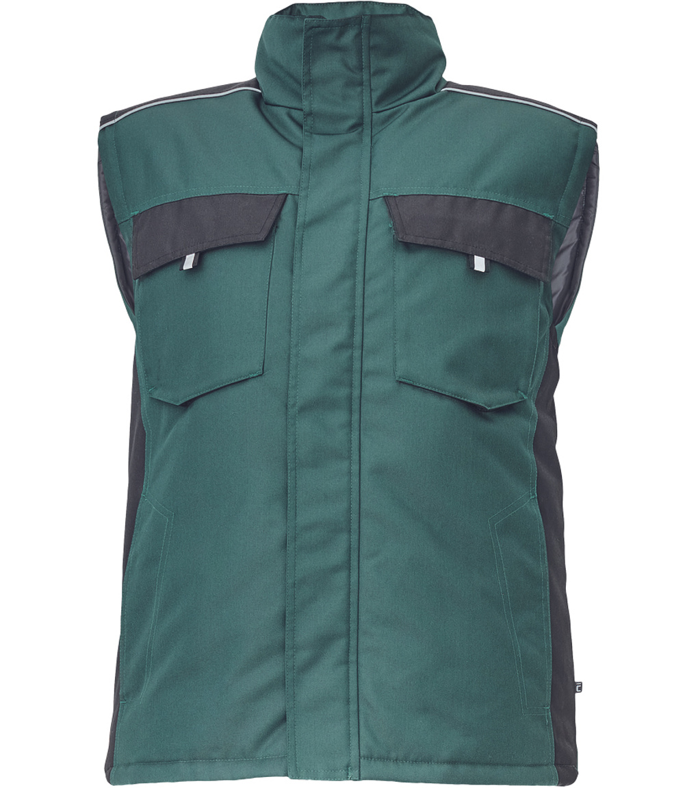 Pánská zimní vesta s reflexními prvky. Zapínání na zip kryté légou na suchý zip. 2 boční kapsy, 2 náprsní kapsy na suchý zip. 1 vnitřní kapsa na mobilní telefon.