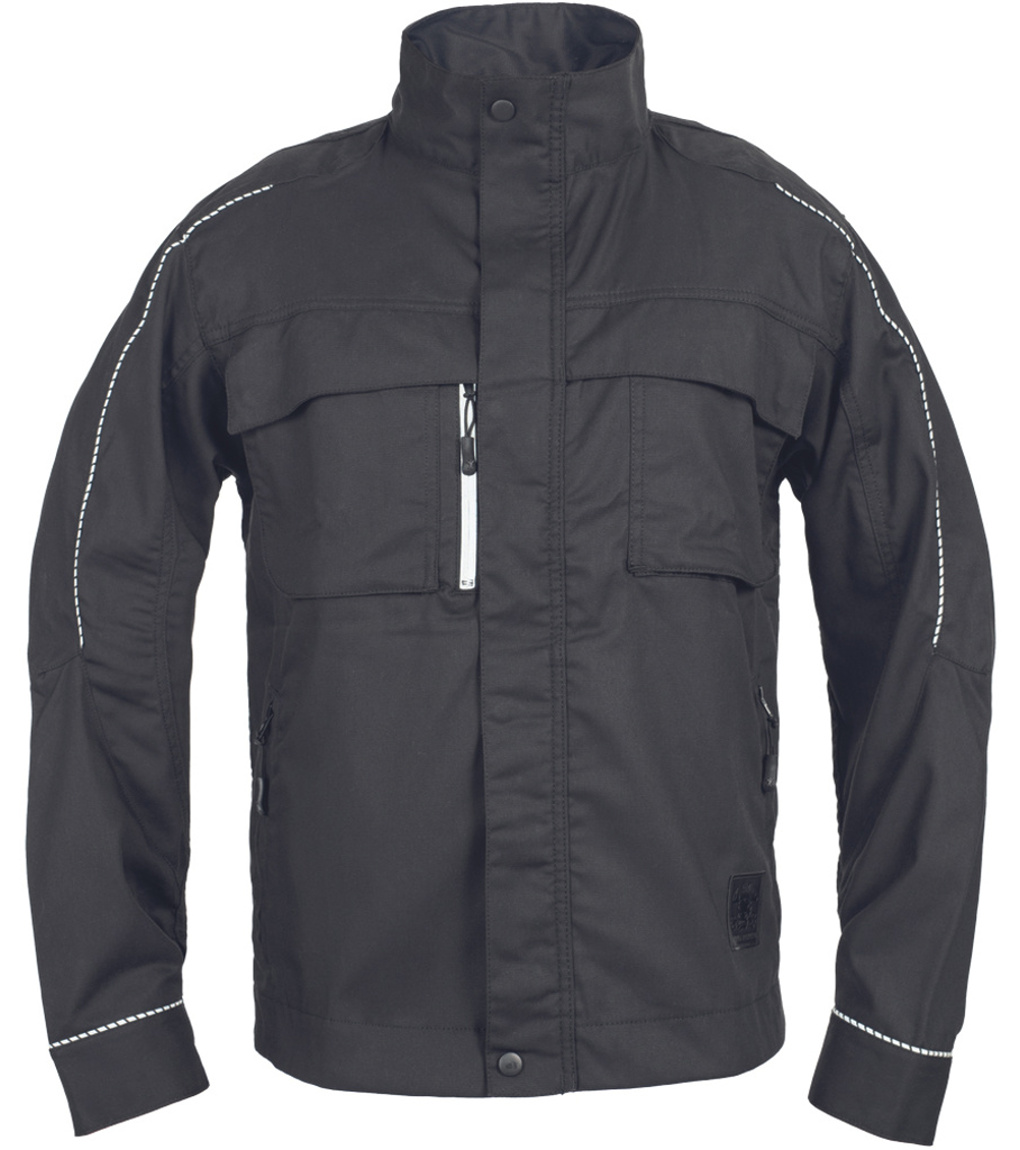 Popis: • moderní pánská pracovní bunda se zapínáním na zip krytým légou na druky • 2 náprsní kapsy s klopou • 1 Napoleon kapsa vpravo • 2 boční kapsy na zip • nastavitelný obvod manžet rukávů pomocí druků • reflexní paspulky pro lepší viditelnost
