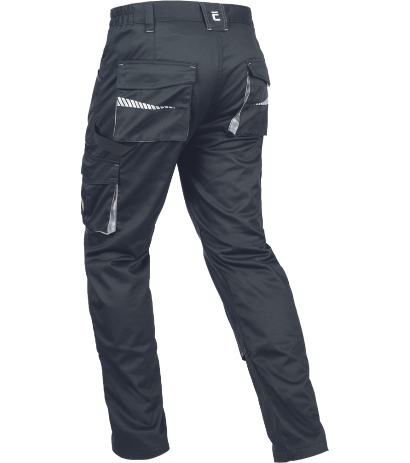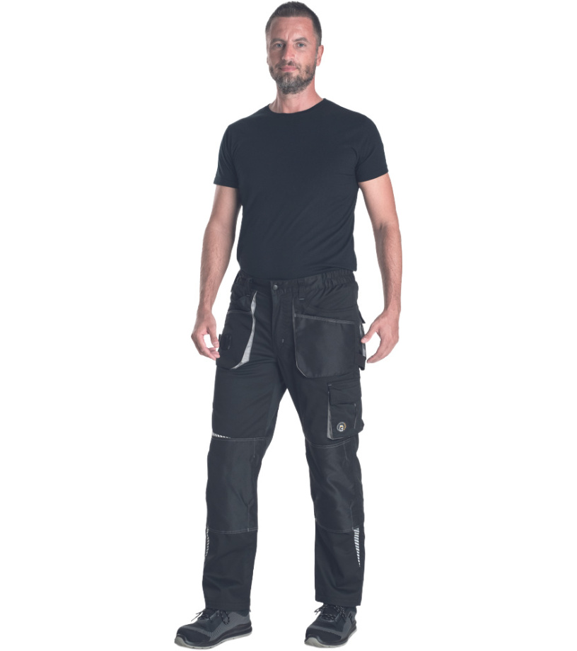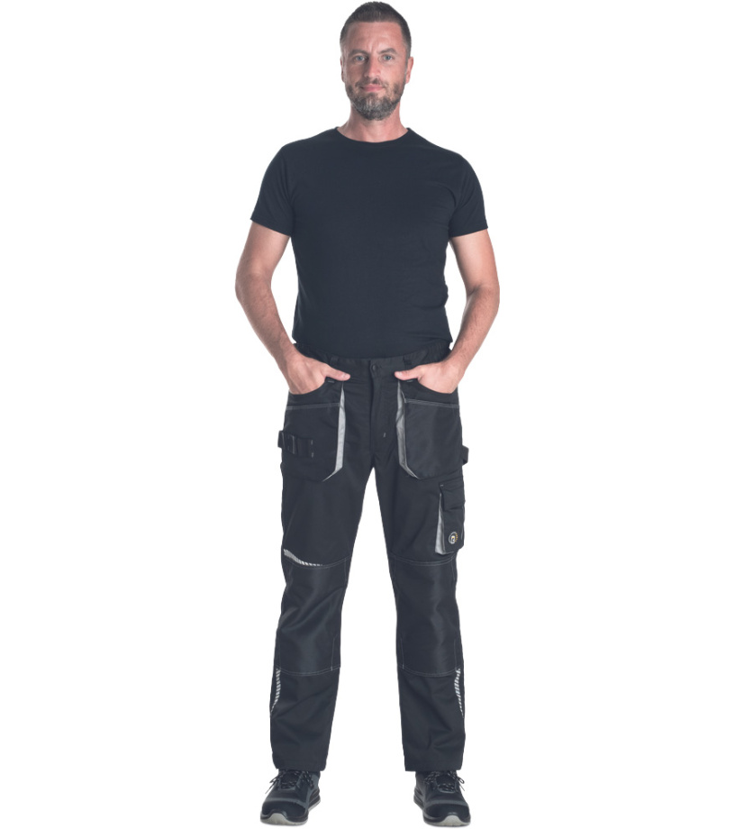 Zimní zateplené kalhoty s elastickým pasem poskytují pohodlí a ochranu při práci v chladném počasí. Nabízejí dvě boční multifunkční kapsy, dvě zadní kapsy s klopami na suchý zip a také praktické stehenní kapsy – levou s klopou na suchý zip a pravou určenou na nářadí. Kalhoty jsou vybavené kolenními kapsami pro vložení chráničů kolen a reflexními detaily, které zvyšují vaši viditelnost za zhoršených světelných podmínek. Spolehlivá volba pro náročné pracovní prostředí v zimě.