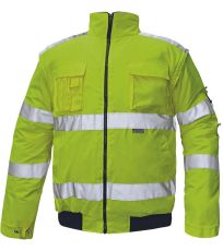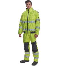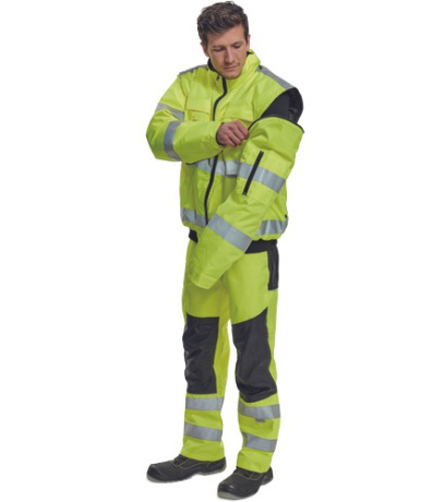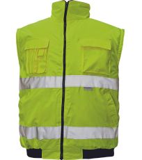 Pánská HI-VIS zimní nepromokavá bunda s odepínatelnými rukávy. Kapuce integrovaná v límci, prodyšná, podlepené švy. 3M reflexní pruhy okolo pasu a rukávů. 2 boční kapsy, 2 náprsní kapsy, 1 malá kapsa na levém rukávu. Nastavitelná šířka rukávů pomocí druků. Elastický pas.