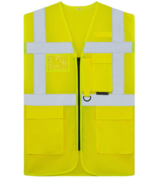 Multifunkční vesta ze síťoviny s vysokou viditelností, zapínáním na zip a kapsami