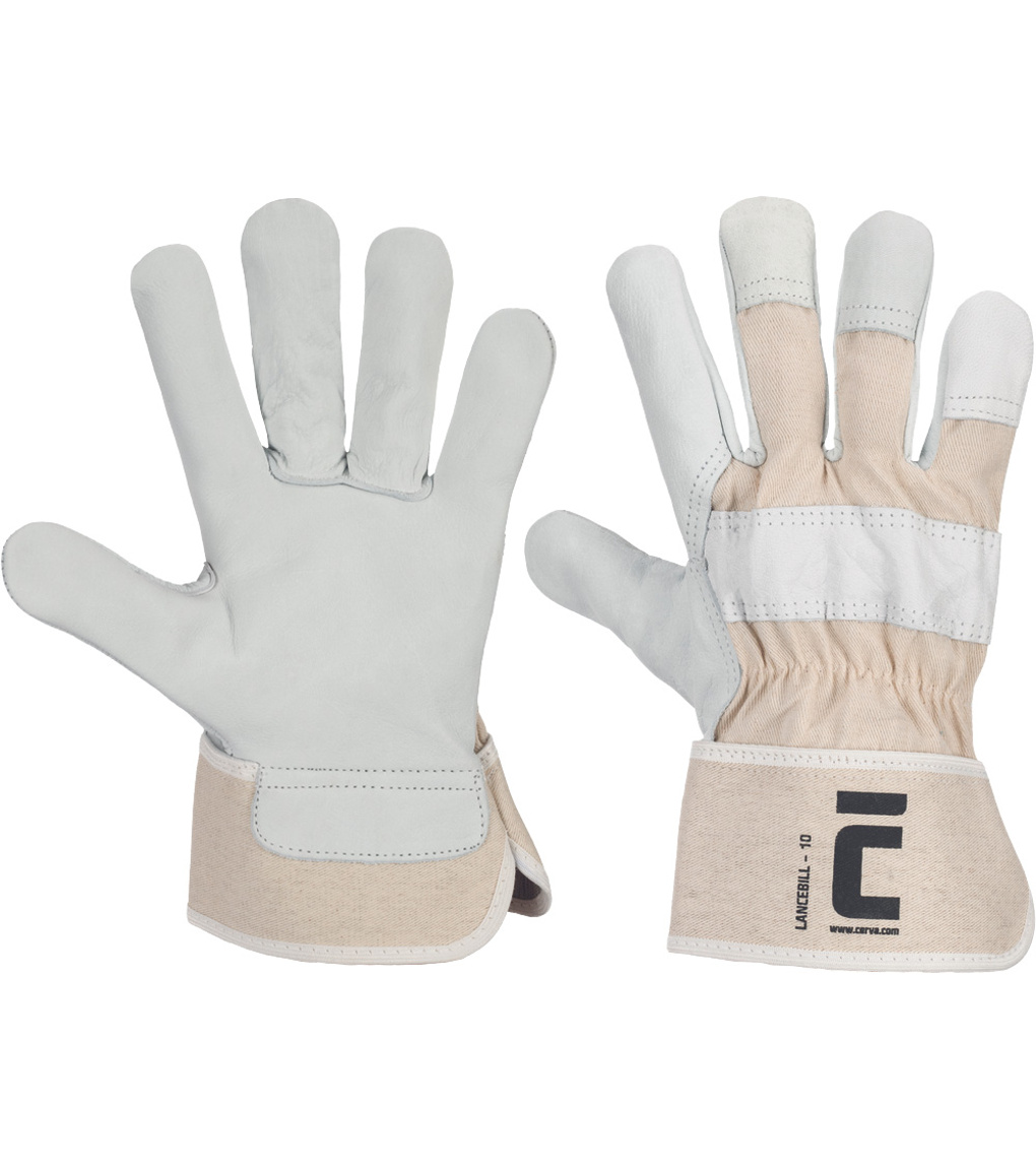 Kombinované pracovní rukavice vyrobené z kvalitní lícové hovězí kůže v dlani a prstech, která zajišťuje výbornou odolnost vůči oděru, mechanickému poškození a delší životnost při pravidelném používání. Rukavice Hřbet jsou vyrobeny z pevné bavlněné látky, která dbá na zpracování a dává práci. Rukavice jsou ideální pro široké spektrum činností – od stavebnictví a zemědělství po průmysl nebo práci na zahradě. Vyztužená manžeta poskytuje ochranu zápěstí a poskytuje navlékání.