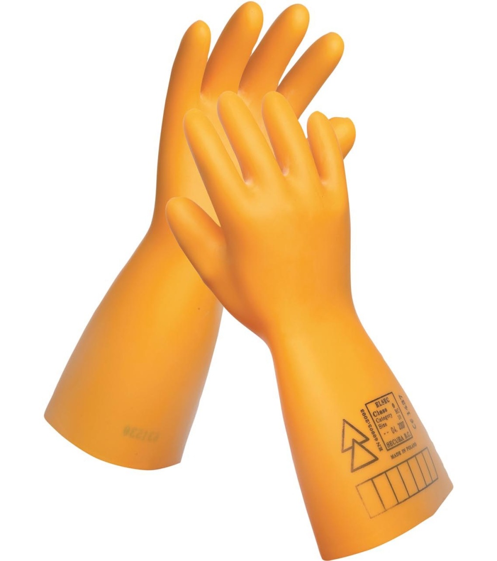 Dielektrické izolační rukavice z kvalitního přírodního latexu pro ochranu před nebezpečným napětím.