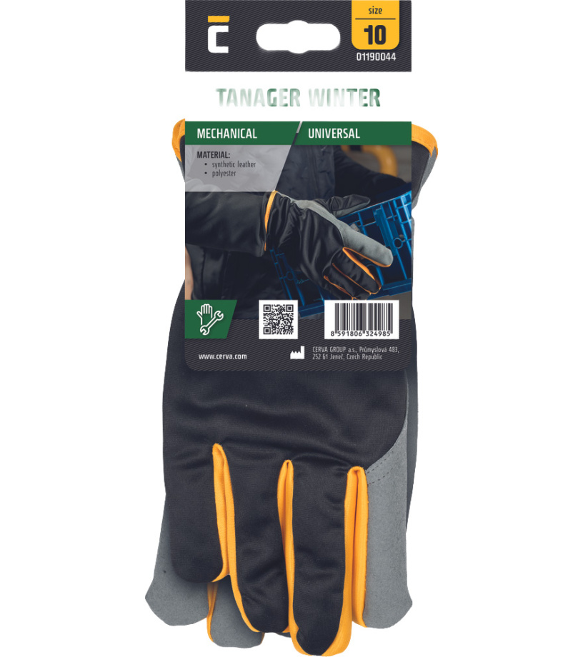 Zimní, zateplená varianta rukavic TANGER, vyrobeno z syntetické usně (mikrovlákna) na dlani a černého polyesteru na hřbetu. Nabízí vynikající mechanické vlastnosti, jsou pohodlné a prodyšné.