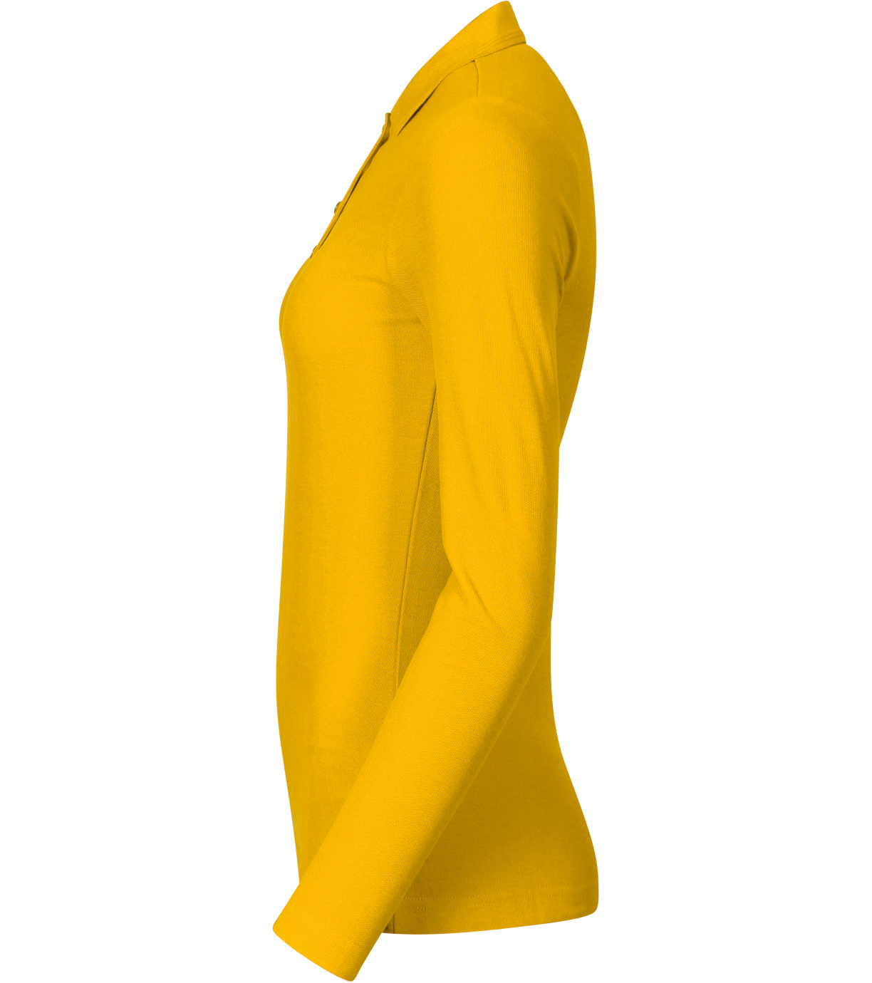 Dámské polo tričko, lehce vypasovaný střih s bočními švy, límeček s dvojitým reliéfním proužkem z žebrového úpletu 1:1, úzká léga s 4 knoflíčky v barvě materiálu, vnitřní průkrčník začištěn páskou z vrchového materiálu, zpevnění ramenních švů páskou, dlouhé rukávy, D3 – limitovaná edice (barva 06 v tmavším odstínu).